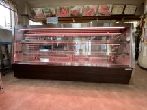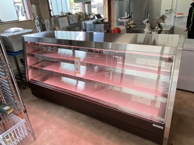 この精肉対面ケースは前面ガラスが引き出せるタイプです。
