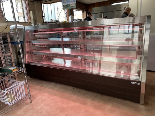 惣菜ケースは非冷対面ショーケースと冷蔵ショーケースにペアガラスで中が仕切られている。